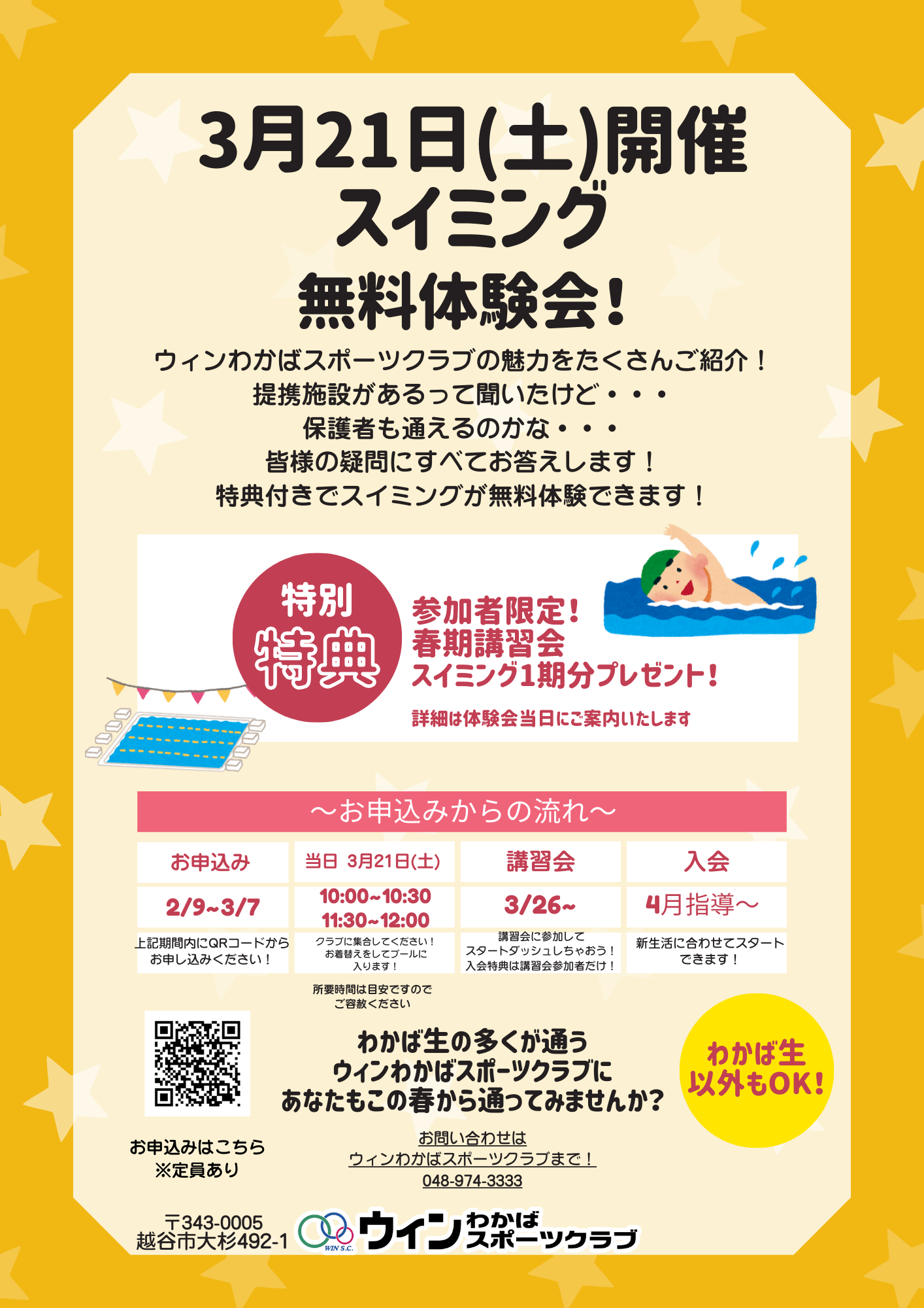 この度、スイミング無料体験会の開催が決定いたしましたのでお知らせいたします!